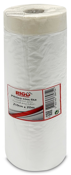 Plástico com Fita 210 cm x 20 m, ideal para proteção e isolamento de superfícies durante trabalhos de pintura, remodelação ou manutenção. Inclui fita adesiva integrada, que permite uma aplicação rápida, prática e segura, garantindo uma fixação eficaz e evitando infiltrações de tinta, pó ou sujidade. Recomendado para proteger aduelas, rodapés, janelas, portas e varandas, este plástico de proteção é resistente, fácil de manusear e assegura um acabamento limpo e profissional, sendo uma solução indispensável para uso doméstico ou profissional.