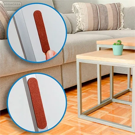 Almofadas de feltro autoadesivas para proteger o chão do atrito dos móveis. Reduzem o ruído e protegem as superfícies de arranhões, riscos e outros danos causados pelo deslizamento dos móveis. O verso adesivo permite colar facilmente as almofadas em superfícies planas sem danificá-las. Fáceis e rápidas de colocar.