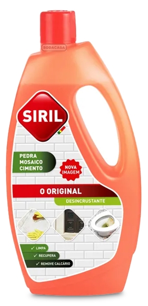 O SIRIL O Original é um desincrustante eficaz para limpeza profunda de superfícies em pedra, mosaico e tijoleira, especialmente desenvolvido para remover resíduos difíceis de cimento, calcário, ferrugem e sujidade encardida. Trata-se de uma solução ideal para limpezas na construção civil, manutenção de superfícies exteriores e recuperação de materiais antigos, garantindo resultados visíveis e duradouros.