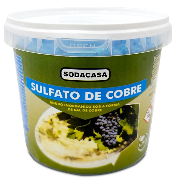 O sulfato de cobre pentahidratado é um composto amplamente utilizado na agricultura pelas suas reconhecidas funções fungicidas, bactericidas e corretivas de carências nutricionais. Rico em cobre, um micronutriente essencial, contribui para o desenvolvimento equilibrado das culturas, reforçando os mecanismos naturais de defesa das plantas e ajudando a prevenir e controlar diversas doenças fúngicas e bacterianas em fruteiras, vinha, hortícolas e outras culturas agrícolas.