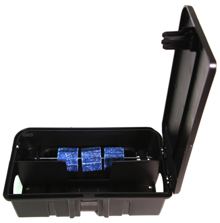 Estação de isco para ratos e ratazanas. Fabricada em polipropileno de alta qualidade, esta estação de isco combina resistência e durabilidade. Possui fechadura de segurança lateral que previne a acumulação de sujidade. Cada unidade inclui um arame horizontal para suporte do isco e chave. Adaptador de parede e cuvete interior estão disponíveis opcionalmente, vendidos à parte. Resistente e feita para durar, é uma solução prática e segura no controlo de roedores.